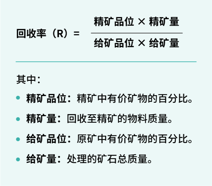 浮选回收率是衡量从矿石中分离出的有价矿物量与初始含量的比例,计算公式如下: