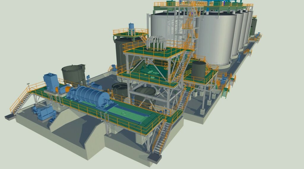 铜、锌、钴和镍精矿的氧化浸出在酸性条件下进行。酸性氧化浸出是一个两阶段过程,其中具有经济价值的金属首先在富氧酸性溶液中浸出,随后将酸性浸出矿浆中和,以沉淀铁和其他有害元素(如砷),然后再分离浸出固体,并从中和后的浸出液中回收具有经济价值的金属。针铁矿沉淀回路非常适合用于氧化矿浆的中和。