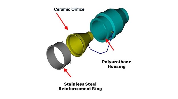 - 低磨损设计、高排放系数的浆液喷射孔板。